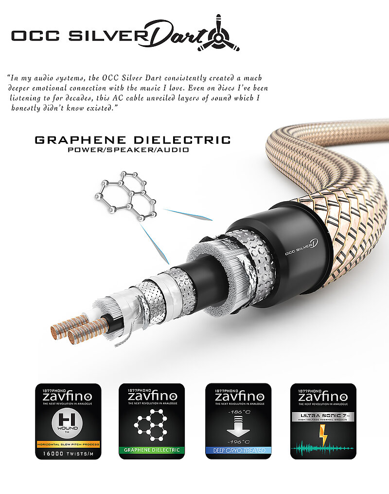 The OCC Silver Dart is the culmination of 3 years development and testing using our H-Wound™ stranding technique on large gauge conductors coupled with our newly developed Graphene doped dielectric.