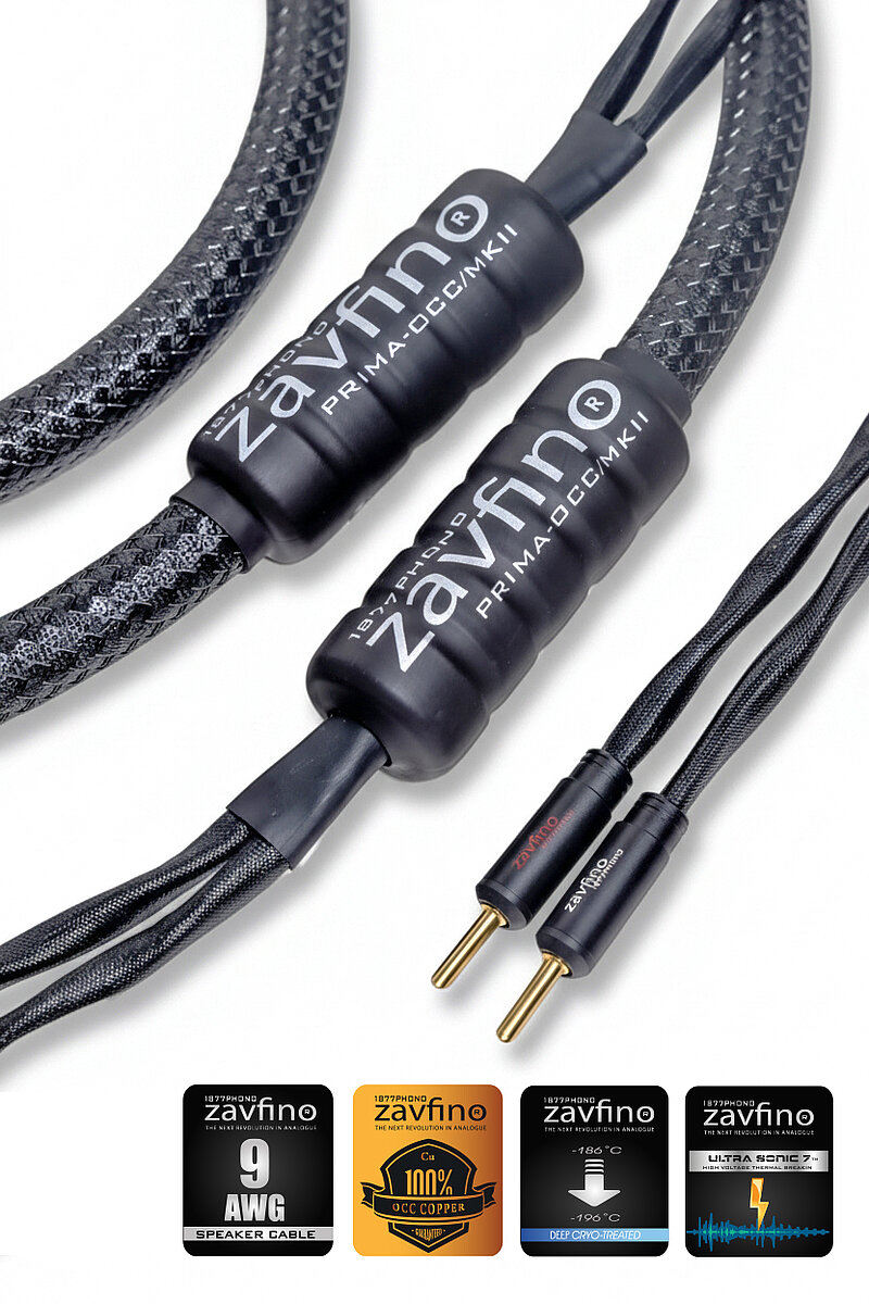 Newly updated and tweaked to perfection Prima MKII speaker cable consists has more OCC single crystal copper in a multi-strand litz construction with an individually insulated silver coated core with a Japan sourced LDPE Dielectric . Using a tight strand/high pitch lay this 9AWG speaker cable can handle the most demanding systems and loudspeakers on the market.