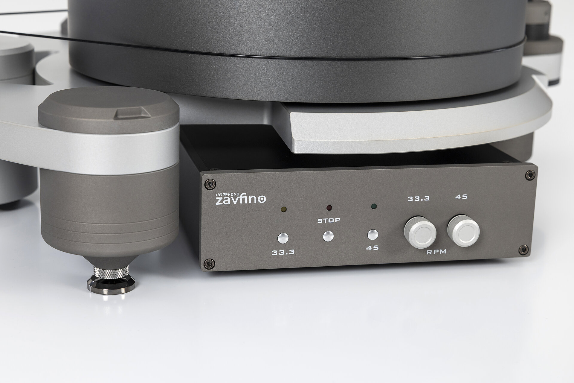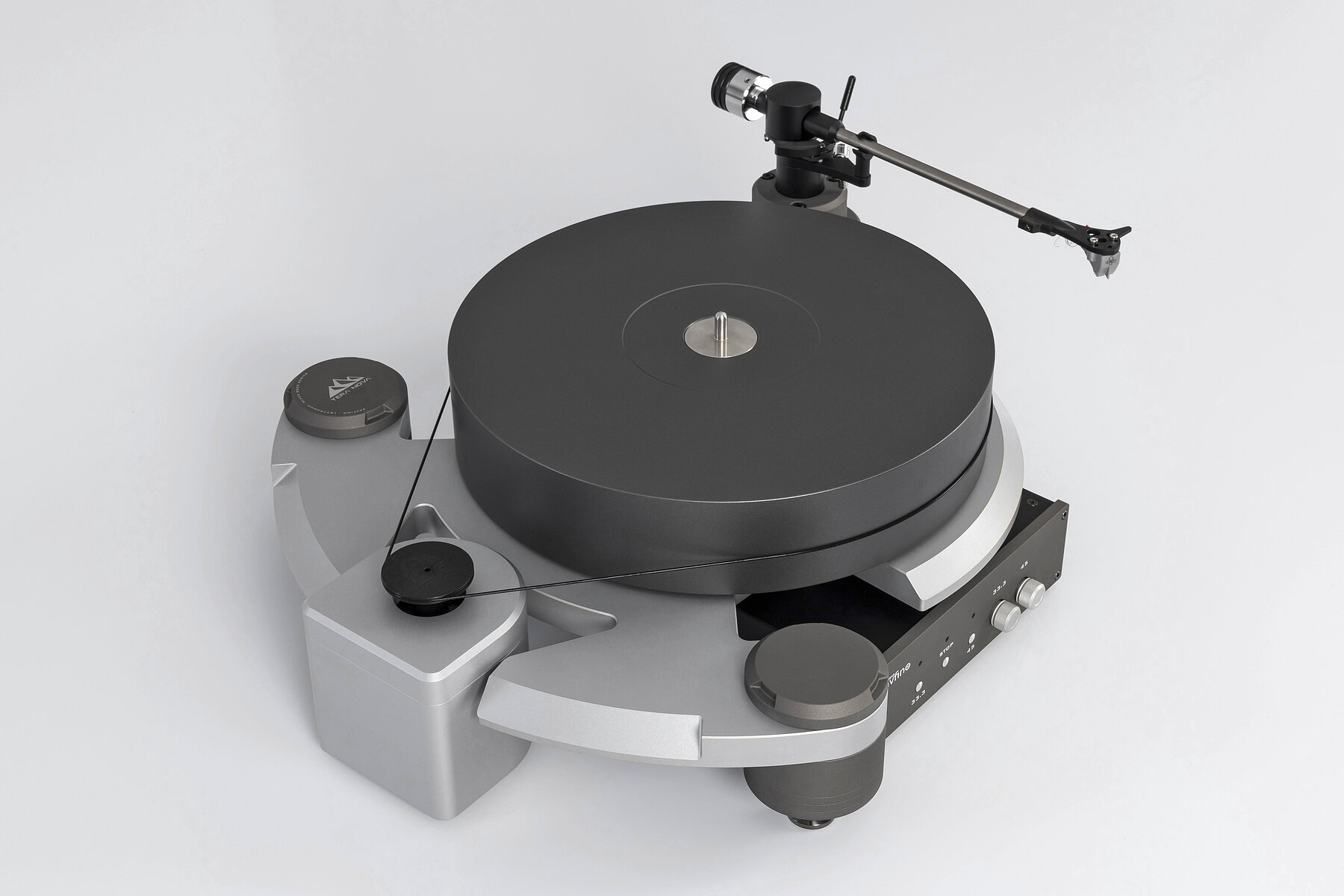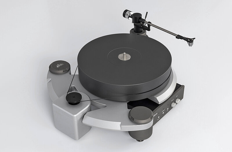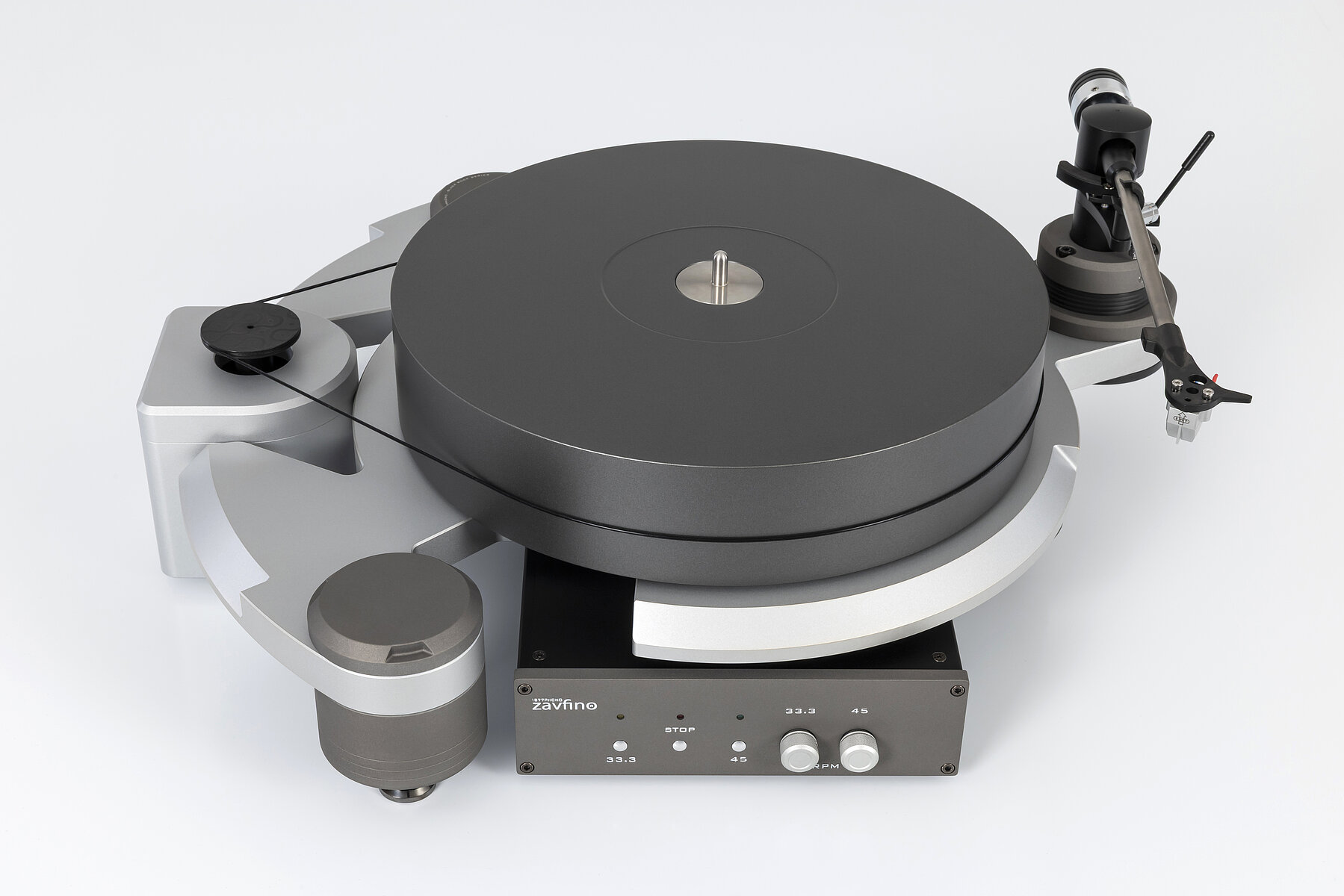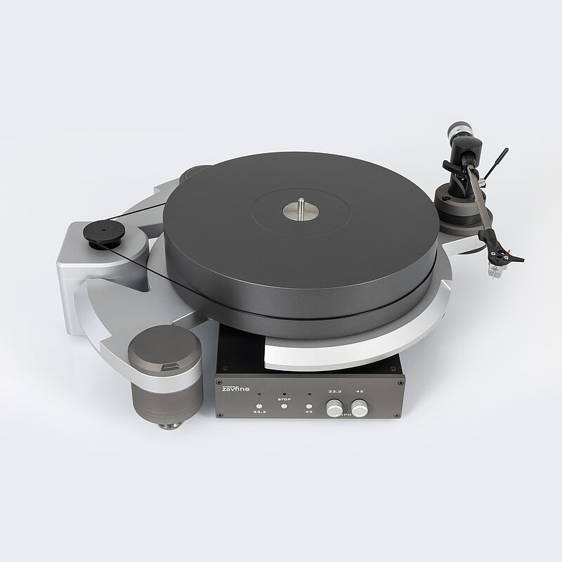 Electronically adjustable 33.3 / 45 RPM with external power supply.